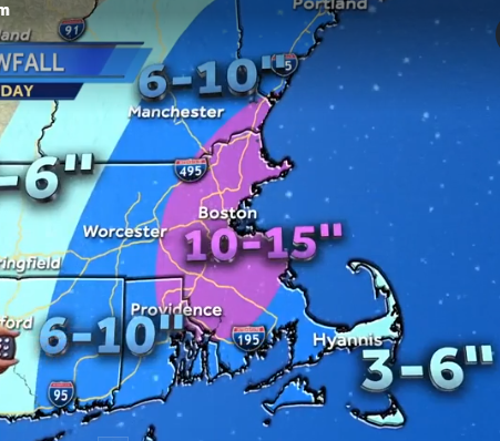 more snow total maps are coming in now that the storm is less than 48 hours away. The storm is expected to start in the early morning hours of Thursday. Below are the weather headlines from two local stations. The first is from WPRI in Rhode Island. I love the fact that they put in writing schools will be impacted. I guess they expect snow days